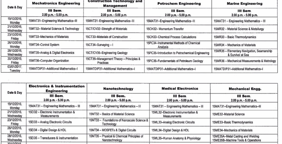 Vtu has published the time table of 3rd semester cbcs exam.